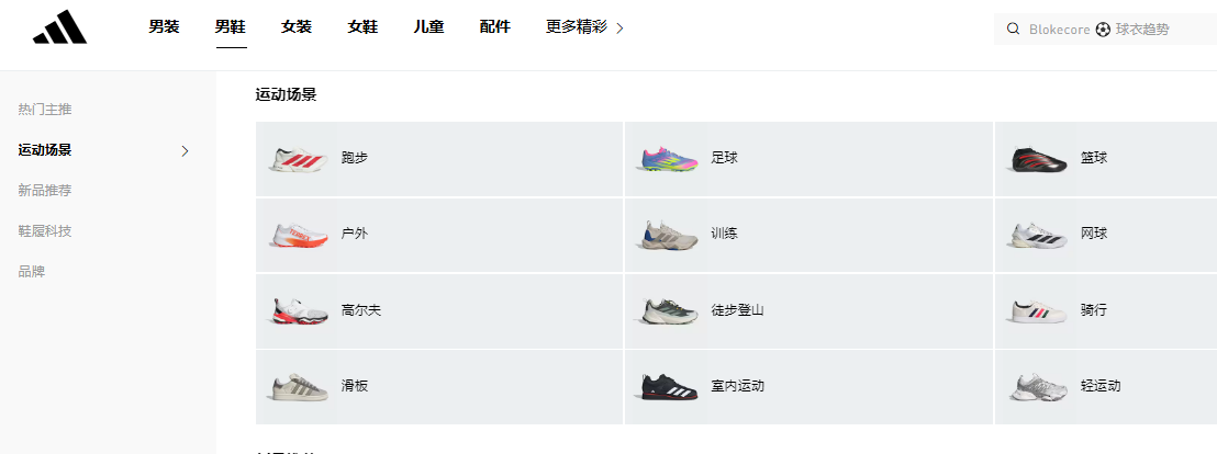 阿迪达斯根据场景分类产品 图源:阿迪达斯官网