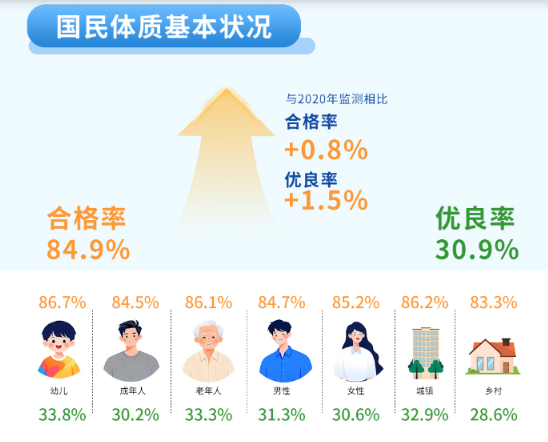 这份五年一度的“国民体质体检报告”显示,我国国民体质合格以上的人数比例达到了84.9%。